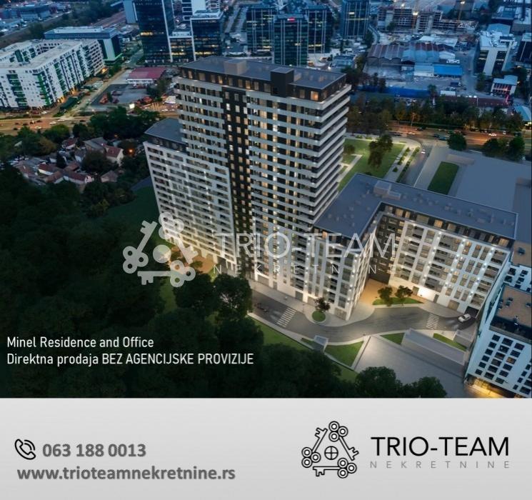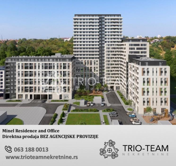 Stambeno-poslovni kompleks New Minel smešten je na izuzetno interesantnoj lokaciji, a odlikuje ga najkvalitetnija i najsavremenija izgradnja. Kontrolisan pristup kompleksu i dvadesetčetvoročasovno obezbeđenje razlog zbog kog se osećate bezbedno i zaštićeno u svom okruženju. Dodatni sadržaji, stanarski interni park - atrijum zamišljen je kao prostor za razonodu dece i odraslih, ispunjen zelenilom i različitim sadržajima , dečijih igrališta, terena za rekreativni sport .....